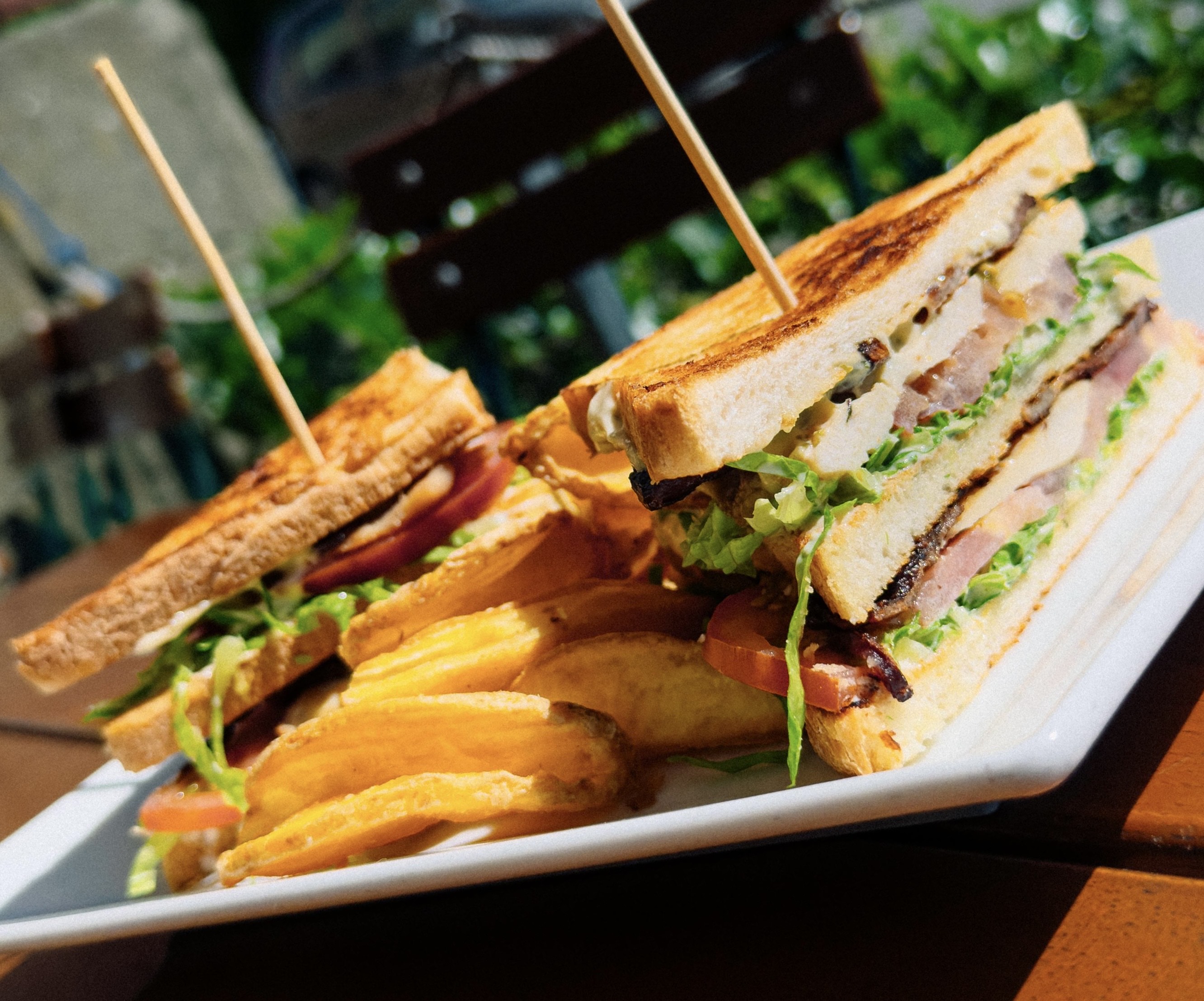 Pancarrè dorato, pollo grigliato, bacon croccante, lattuga, pomodoro e la nostra salsa chicken. Servito con patatine Crispy*.
