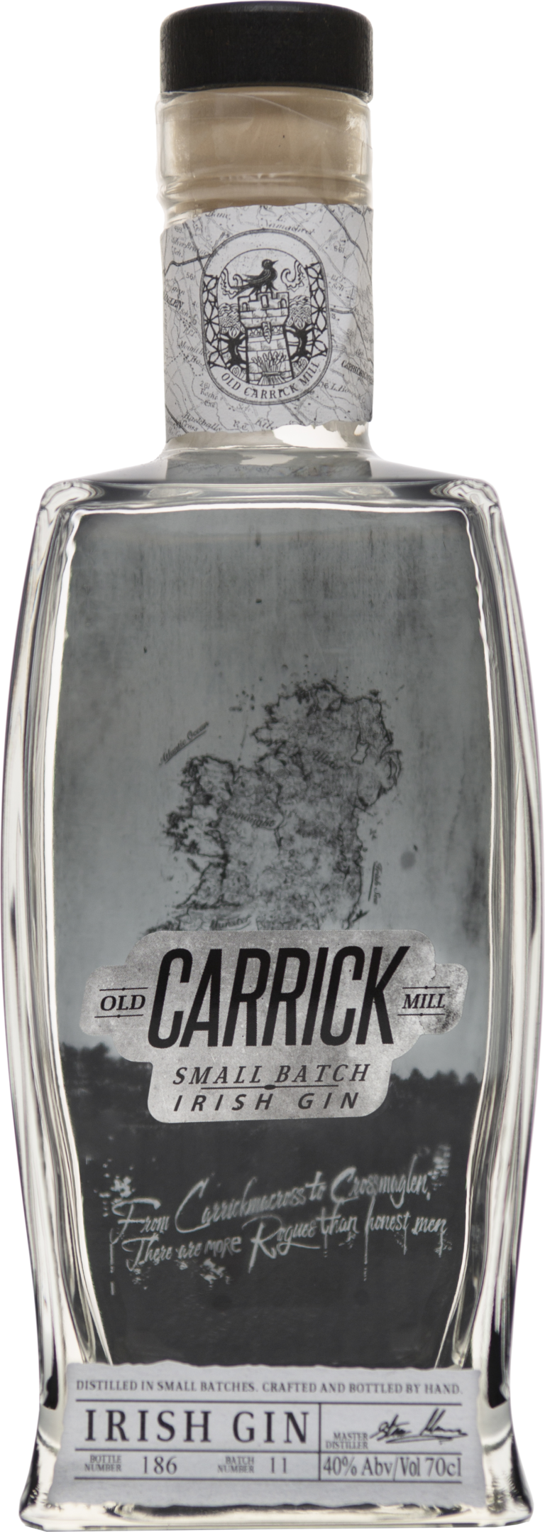 Gin super artigianale, Old Carrick Mill è un gin irlandese prodotto e imbottigliato a mano nella città di Carrickmacross. Questo gin nasce dalla combinazione di 10 botaniche, tra cui bacche di ginepro, limone, cassia, pera, cetriolo e thé nero.