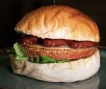 Hamburger di farina legumi e ortaggi, lattuga, pomodoro e patatine crispy.